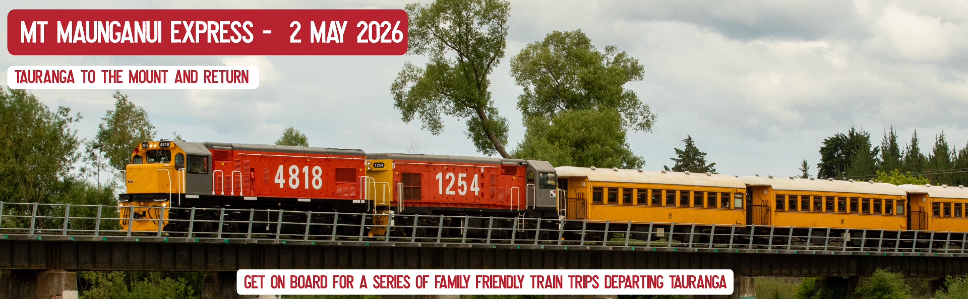 Step onboard our lovingly restored heritage coaches, hauled by heritage diesels DBR1254 and DC4818. Settle into your seats to enjoy one of these short trips from Tauranga to Mount Maunganui and return - perfect for all the family!