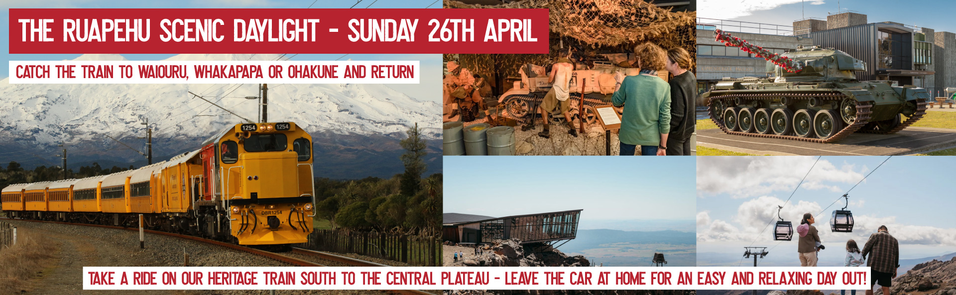 Take the full adventure to Waiouru - home to NZ's Army Museum, plus travel over the magnificent Makatote and the grand Hapuawhenua viaducts as well as passing Tangiwai - the site of New Zealand's most tragic rail disaster in 1953.